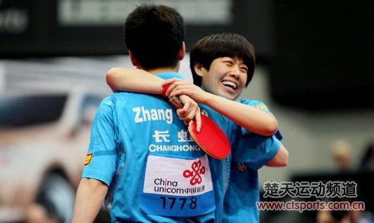 北京时间5月13日晚间,2011荷兰鹿特丹世乒赛展开正赛第五比赛日的争夺。混双决赛在两对中国组合之间进行,最终张超/曹臻以4-1(11-7、11-7、11-9、9-11、11-8)击败郝帅/木子夺得了混双冠军,这也是鹿特丹世乒赛的第一金。曹臻成功卫冕,成为继刘伟、郭跃之后国乒史上第三位成功卫冕的混双女将,而张超更是成为国乒史上的第102位世界冠军。