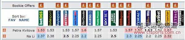 以下博彩公司开出的李娜VS科托维亚赔率: