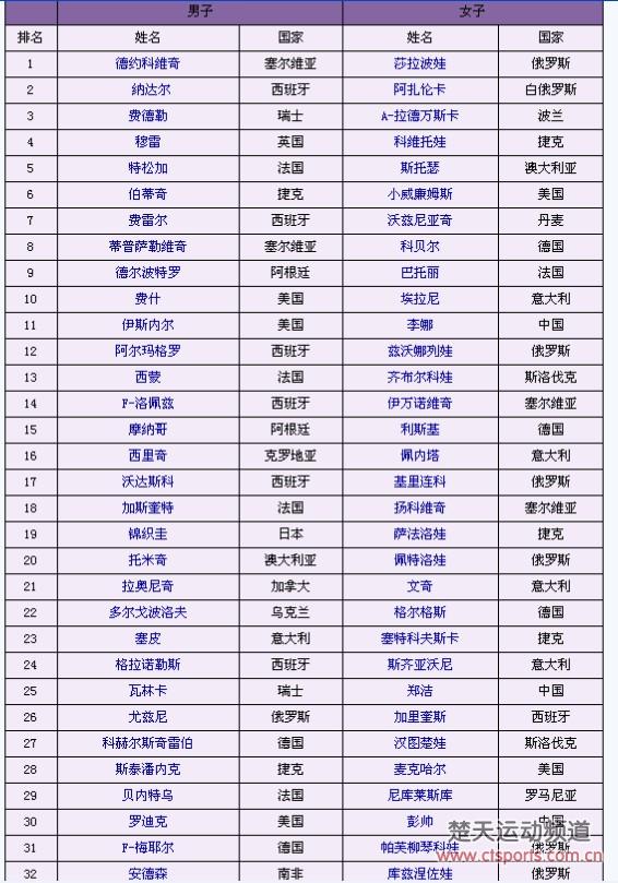 以下是温网详细的男女单种子排序: