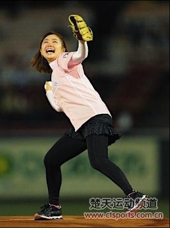 国庆假期期间,日本乒乓球名将福原爱来到棒球赛场,在宫城为日本棒球赛乐天vs西武的比赛开球。