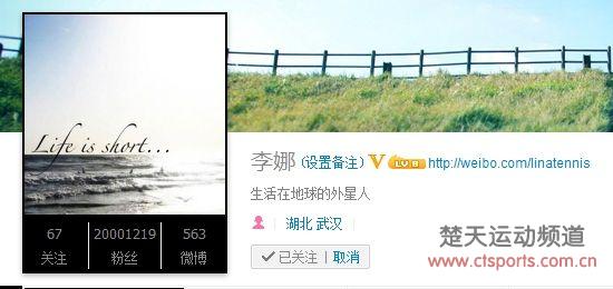 李娜的新浪微博粉丝数突破2000万大关