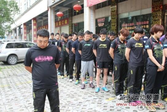 4月28日消息,昨天是芦山“4.20”地震发生一周的日子,一大早国乒队就统一穿上了黑色的运动服,要通过集体默哀的形式,哀悼在地震中遇难的同胞。8点02分,在总教练刘国梁的带领下,国乒教练员们深情严肃集体为遇难同袍默哀三分钟。