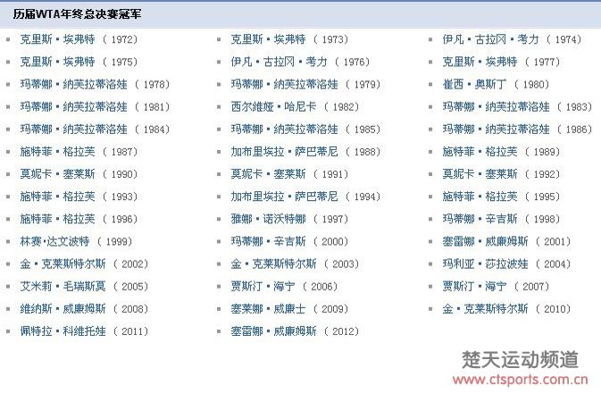 WTA年终总决赛历届冠军