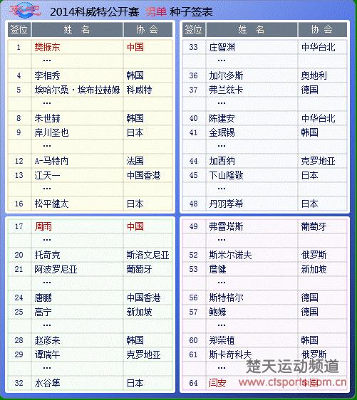 2014科威特公开赛国乒参赛名单(根据国际乒联网站信息,不排除会有个别调整):