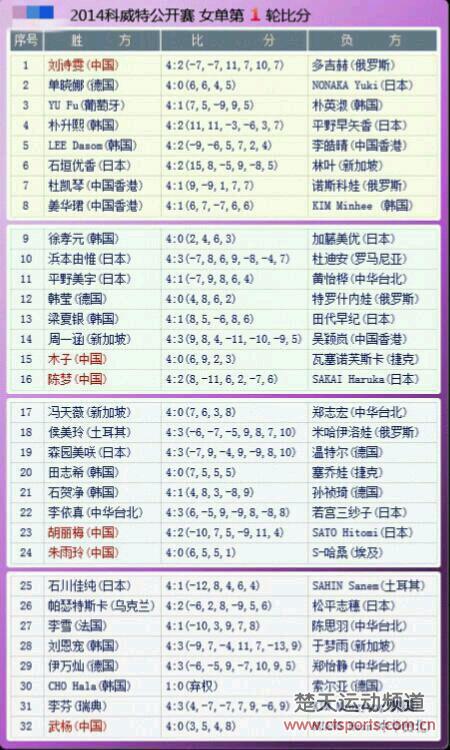 科威特赛女单第一轮比分表: