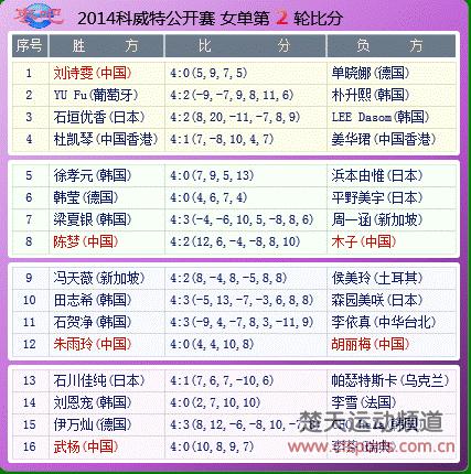 科威特赛女单第二轮比分表: