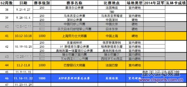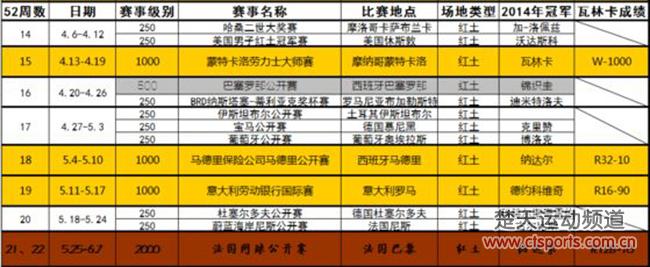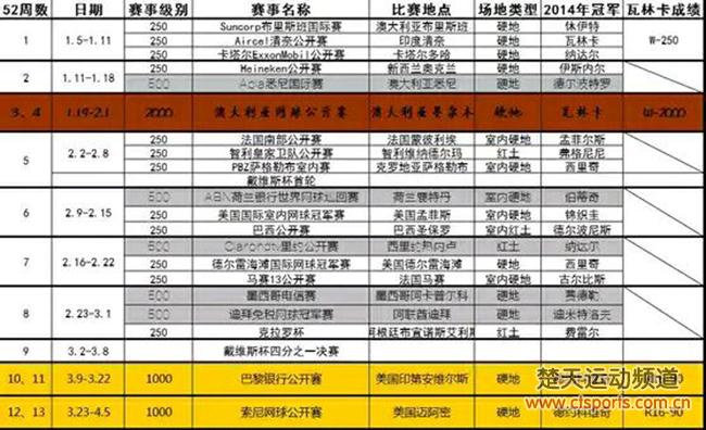 日前,ATP本周发布了2015赛季巡回赛日程表。2015赛季将在全世界31个国家举办62项巡回赛,并将温网之前的草地赛季延长至3周。