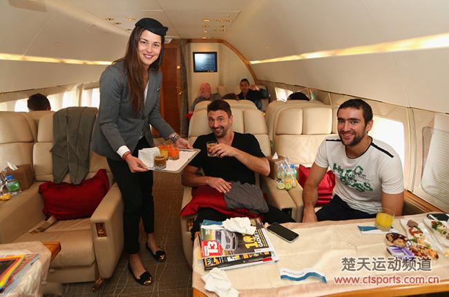 日前,正在亚洲出战国际网球超级联赛的塞尔维亚美女伊万诺维奇,在结束菲律宾马尼拉的首站比赛后与参加本次比赛的网坛明星们踏上了飞往新加坡的航班。在这次飞行途中,女神伊万化身俏皮空姐,为同行的其他网坛巨星送上顶级空中服务,一招一式十分专业。
