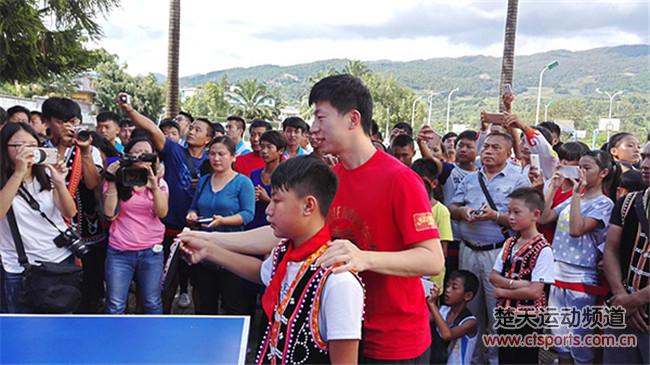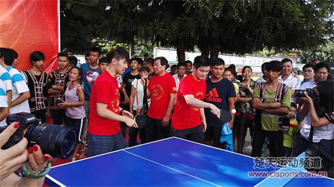 8月13日消息,在2015中国乒乓球公开赛结束之后我们的国乒队员们马不停蹄的就携手上海红双喜鹅公司一起来到了云南普洱,国乒领队黄飚、红双喜总经理楼世和、八一队主教练王皓、国乒主力马龙、樊振东、闫安、丁宁、李晓霞、陈梦、朱雨玲参加了此次活动。据悉,本次活动主题为改善普洱山区学校教育和生活环境,而这也是国乒第二次来到普洱助学。