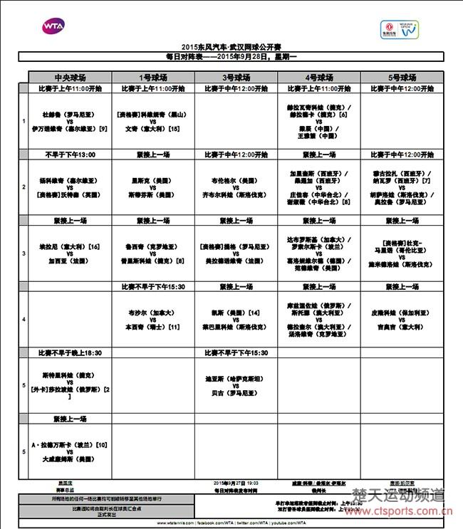 2015年武汉网球公开赛第二日争夺已经开始,近日中央球场比赛由罗马尼亚选手杜赫鲁和赛会9号种子伊万诺维奇拉开序幕,随后13点扬科维奇对阵资格赛选手沃特森,而晚上18:30,持外卡出战2015武网的莎拉波娃原来她的首战,莎娃VS斯特里科娃,在莎娃比赛结束之后的则是前世界第一大威廉姆斯和波兰名将A-拉德万斯卡的对决。