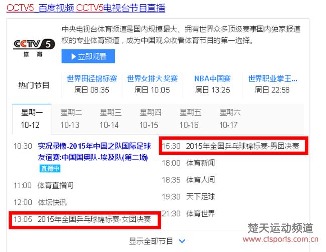 【直播地址】CCTV5