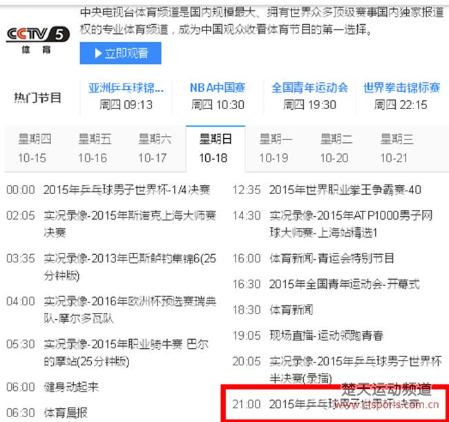 2015年男子乒乓球世界杯将于10月16日-18日在瑞典哈姆斯塔德举行,本次男乒世界杯,中国马龙、樊振东两人参赛,第一阶段,世界排名最高的八位球员暂时不参赛,樊振东、马龙直接进入第二阶段比赛,根据比赛赛程,2015男乒世界杯决赛将于10月18日晚21:00挥拍开赛,楚天运动频道将实时高清直播2015男乒世界杯,敬请收看!