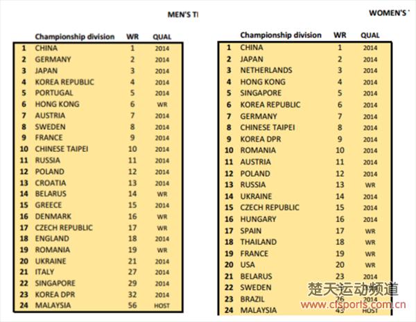 日前,国际乒联官网公布了2016年吉隆坡世乒赛种子队伍名单,根据种子排名定档规则,2014年东京世乒赛前16名直接进入第一档,参与冠军角逐。在第一档种子排名名单中,中国队包揽男女双项头号种子,强敌日本队排名第二,荷兰第三,而韩国队仅排名第六。