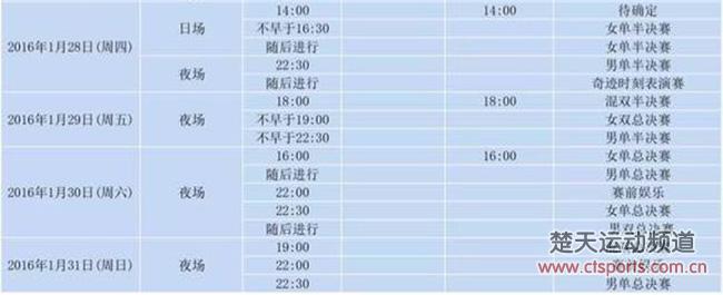 2016澳网公开赛女单决赛将在1月30日下午16:00进行,而备受瞩目的男单决赛将在31日晚22:30分进行,央视cctv5体育频道届时将会直播2016澳网公开赛决赛,楚天运动频道也将全程进行实况转播,敬请期待!