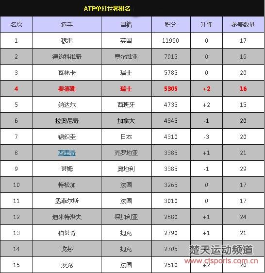 在2017迈阿密大师赛结束之后,最新一期的ATP世界排名也新鲜出炉。2016赛季仅打到温网就挂拍休养的费德勒,在2017网球硬地赛季战绩惊人,短短三个月就将世界排名从第17位拉升到第四位,与世界第三瓦林卡也仅差480分。