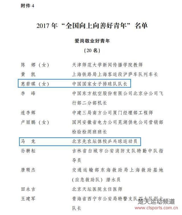 5月4日消息,恰逢五四青年节,共青团中央发出红头文件,表彰2016年度“全国优秀共青团员”、“全国优秀共青团干部”、“全国五四红旗团委(团支部)”和“全国向上向善好青年”。去年的入围名单中,奥运冠军马龙上榜,今天公布的获奖名单中,马龙也在表彰名单中。除了马龙之外,中国女乒队长惠若琪亦获奖。