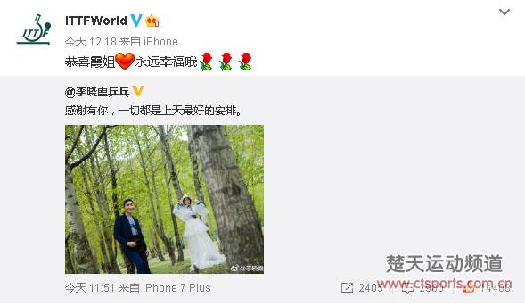 而作为乒乓球大满贯,曾拿到两届奥运会三枚金牌、一枚银牌的著名球员,李晓霞公布喜讯也引来了国际乒联的祝贺。