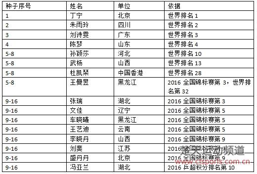 2017全运会乒乓球决赛男单、女单种子选手名单出炉,男单方面,马龙、樊振东、许昕、张继科分列1-4号种子。女单方面,丁宁、朱雨玲、刘诗雯、陈梦、孙颖莎分列1-5号种子。