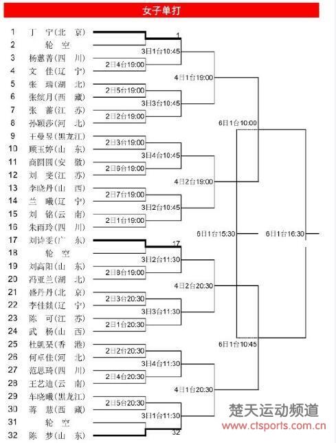 刘诗雯在3/4区,由于李晓霞退赛本次全运会女单前三号种子首轮都轮空。国乒女队副队长武杨也在这个区,如果刘诗雯能发挥正常她将是该区晋级四强的最大热门。陈梦第二轮将对阵黑龙江车晓曦与西藏蒋慧之间的胜者,随后或与河北的何卓佳、中国想阿纲的杜凯琹以及云南的王艺迪等人之间的胜者争夺四强席位。