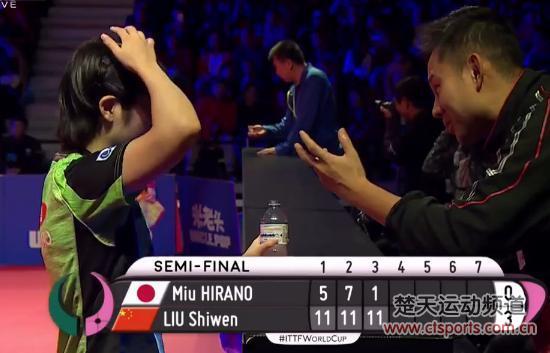 从第一局开始,平野美宇面对无懈可击的刘诗雯毫无办法,无论是拼速度的前三板,还是对拉中变直线,亦或是反手比拼中变正手拉斜线抢攻,平野美宇都遭遇完败。平野美宇引以为傲的速度优势在刘诗雯面前被按着打。比赛中平野美宇频频摇头,在被打11-1后她直接抱着自己的头,不敢相信自己会有如此糟糕的表现。