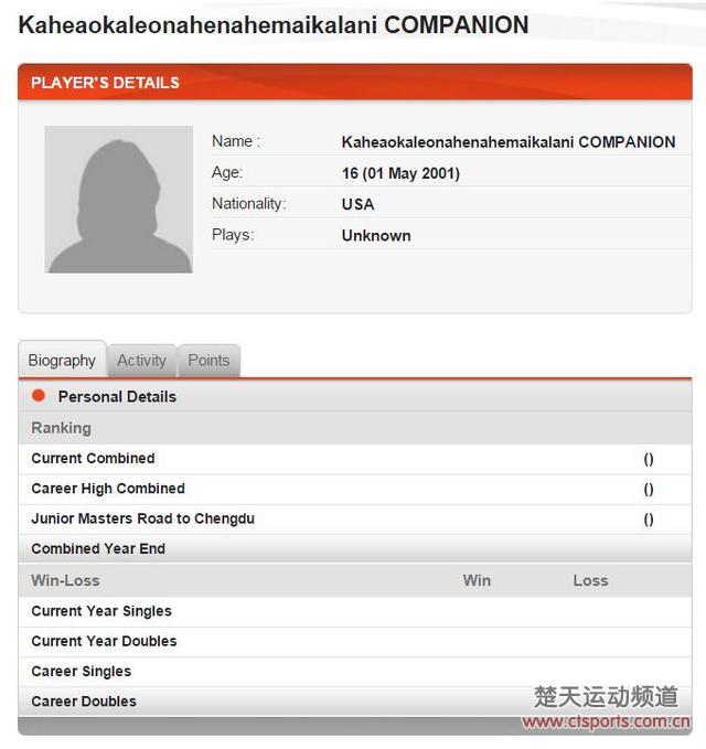 与中国方块字不同,外国人大都是使用的字母,因此他们出现特别长的名字也较为正常。不过,单个名长度达到28个字母的,还是极其罕见了。近日,ITF页面上一位来自美国的16岁女网球选手,她的名字裁判看了估计想晕过去,她的名字叫——Kaheaokaleonahenahemailkalani Companion。