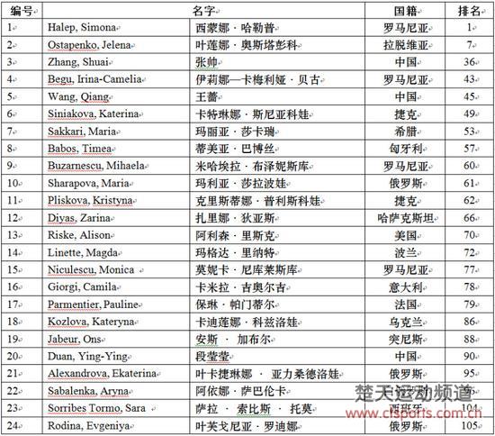 附:单打正赛名单