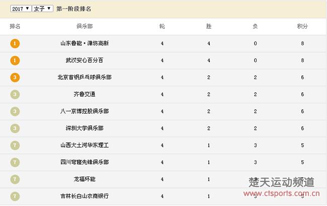 女团方面,目前只进行了四轮比赛,山东鲁能俱乐部和武汉安心百分百均拿下四连胜,并列女团第一。北京首钢、齐鲁交通、八一京博和深圳大学以2胜2负并列第三。
