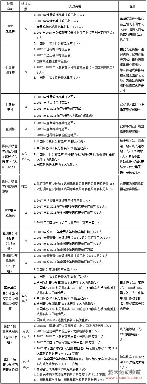 中国乒乓球协会2018年参加国际赛事运动员选拔办法(试行)