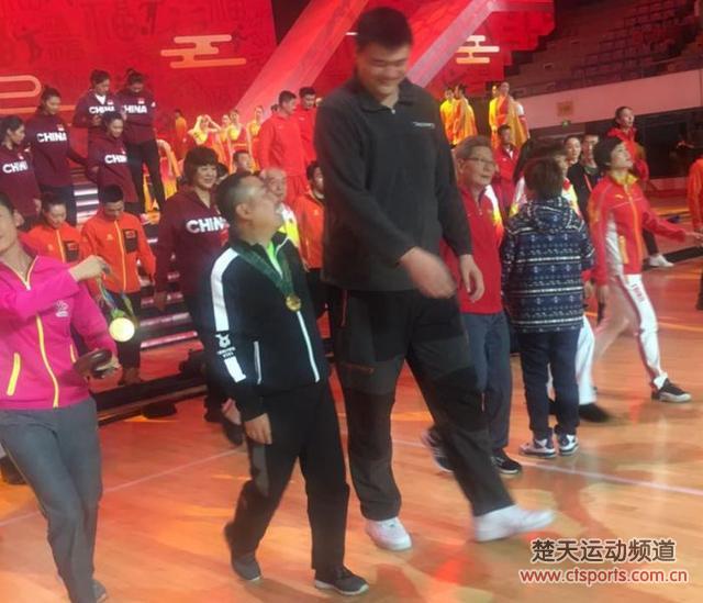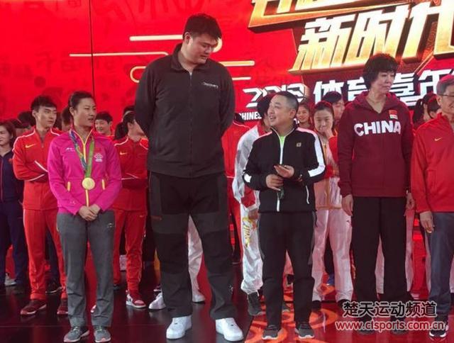在新华社发布的节目彩排照片中,刘国梁站在姚明和郎平的中间,正在带上亚特兰大奥运会金牌,彩排结束后,众人走下舞台,姚明与刘国梁依旧有说有笑。