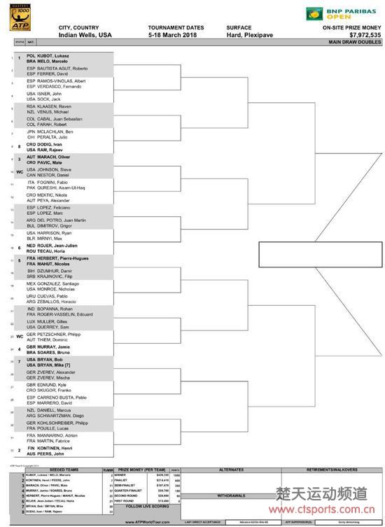 各方评论-2018年ATP1000印第安维尔斯大师赛已经开打,在印第安维尔斯赛开赛之前,组委会曾公布一则消息,称只要能拿到印第安维尔斯赛单打和双打2冠,将额外获得100万美元奖金。重奖之下必有勇夫,在印第安维尔斯赛男双签表上,我们可以看到迪米特洛夫和德尔波特罗配对,兹维列夫兄弟携手出战,阿古特搭档费雷尔参赛。