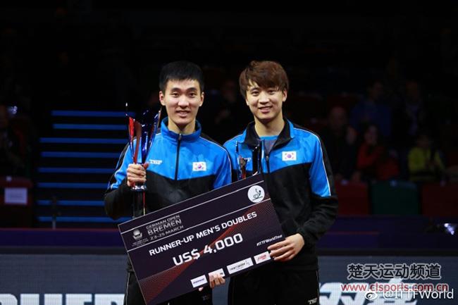 比如拿到男双亚军的郑荣植/李尚洙,两个人一共才4000美元,这个奖金还需要上交一部分给韩国乒协,剩下的再两个人平分,估计最后每人拿到的奖金还不足1000美元。也难怪在颁奖礼上李尚洙直接把奖金牌子放下了。