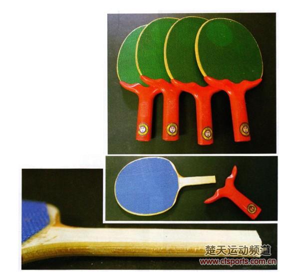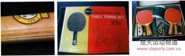 第一种是三夹板,型号E6057,这种胶柄的老Wilson只见过大盒的套装,用的木材仍然是美洲椴木,完全没有改变。那时美国生产的乒乓球板,大多以椴木为材。其实早期的国产乒乓球板,基本上也全是椴木做的。因为当时世界上最好的品牌就是Wilson、Westminster和Dunlop等,这些英、美品牌都是椴木球板,所以国内开始做板时只能以那些名板为蓝本。但国内用的椴木木质与欧美所用的大为不同,所以造出来的球板也和外国有一段距离。