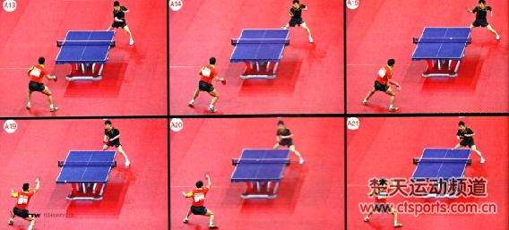 就往后退准备连续,在后续的进攻中王皓每一板进攻都显得十分从容。这说明王皓的连续进攻的意识和能