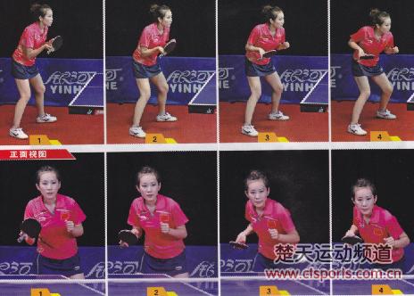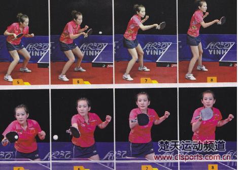 伸,做了一个送球的动作,这也就保证了她整个加力推的动作完整性,增强了出球的质量。寻找合适的击球点,注意进攻落点的灵活选择。