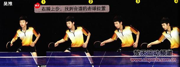 2、准备晃推时,步法和身体重心要保证移动到位,手型要给对方一个要搓球或是要摆短的假象,这样能够加强晃推的突然性。