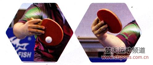 敲的动作要领就是引拍动作无需太大,球拍略呈横向更容易做动作。击球时拇指压住板形,尽量呈平打状,手背要稍拱起。发力时拇指、手腕手背向前击球,动作幅度不宜过大,力量也不宜过大,但千万不能甩着手腕打。动作结束时手背拱出,既支持了发力又起到稳定动作的作用。