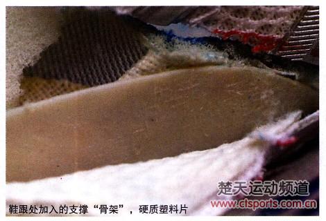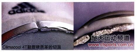 鞋楦设计得再合脚,若穿几天就变形也是枉然。对于整只球鞋,皮革类部分越多、越硬,就越不容易变形。鞋跟与鞋帮的设计,最为显眼,也最有塑形效果。