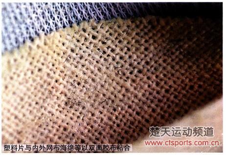 好鞋的鞋面必须稳固,不论是鞋舌与两侧的缝合,还是两侧与鞋底的缝合。保证了结实,再谈外观。鞋面在兼顾透气性的同时,有着不同外观设计。鞋面上的装饰材料,通常有合成革、透气网面、软塑料、金属网等,缝合是主要手段,胶合则如影随形,在线面直接查漏补缺,以求万全。