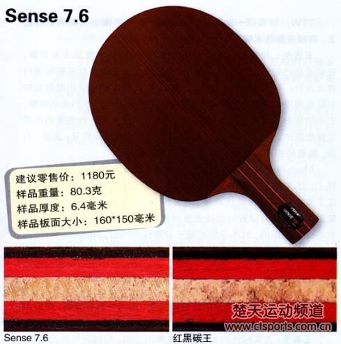 新款除了表面材质不同、增加涂层外,整体厚度、各层厚度都与原型基本相同,重量稍稍减轻。以Sense命名,暗藏着偏重手感的意味,试打后确实如此。球板整体形变比红黑碳王多出不少,吃球的感觉更加深刻。Sense 7.6的弧线虽然低平,也明显比红黑碳王高,容错性更好,在相持球中更显从容。速度方面,介于CL CR与红黑碳王之间的档位,发力则快,借力也不慢。就像在路况一般时行车,5档明显过快,4档又有些不过瘾.Sense 7.6就多出了一个4.5档,在进攻中有更大余地。斯帝卡通过对球板的微调,实现多档位变化,境界愈发细腻。