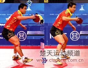 王皓接发球时的站位总会与球台保持一定的距离,这与他正反手两面都可以进攻的技术结构有关。相比之下,马琳接发球时的上半身前压十分明显,这使他的身体距离球台比较近,有利于快速侧身。王皓在接