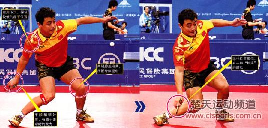 组图中,王皓对突如其来的将出台球采用了“应急”方式拉球。他对旋转和弧线的理解非常高深,对身体各部位的控制十分到位。在我们看来已经“绝望”的球,王皓可以利用他的技巧,最大限度地提高击球质量,这一点值得我们认真学习。
