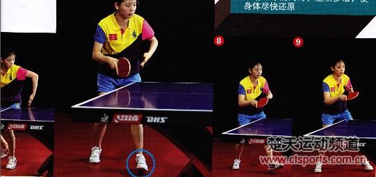 眼睛盯球的同时,起动步法,使身体尽快还原。