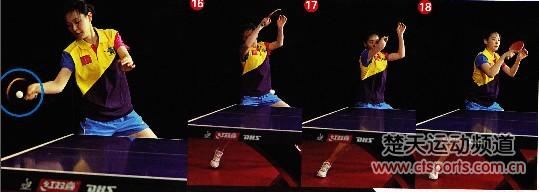 乒球训练-通常女运动员在发球抢攻处理反手位的下旋球时,多以反手起板为主而侧身少,所以提高抢攻质量相对较难。曹紫涵在侧身位正手发球时提高发球的质量,发出了高抛加转左侧下旋短球,落点在对方的中路偏右近网处。这样可以使对方不能轻易变线,而回球基本也会到曹紫涵的侧身位。此时,她需要迅速移动步法,以正手侧身弧圈进攻为比赛的得分点,突出正手进攻的威胁。