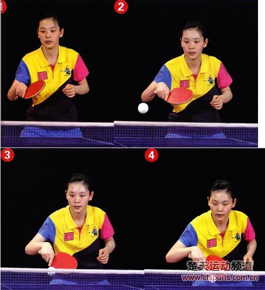 图1-4:紧盯来球,根据来球落点迅速引拍