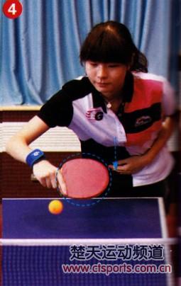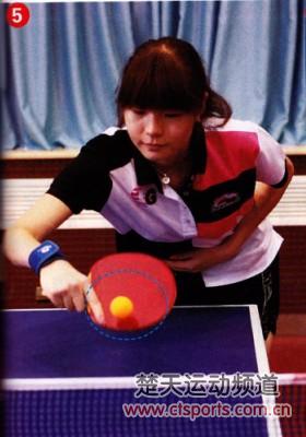 在来球的上升期触球中下部,触球时手腕借力用力,控制好击球的力量和弧线。