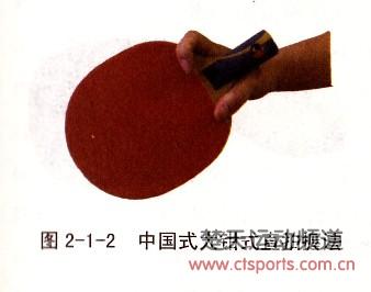 握得比较稳,能有效地利用上臂和前臂集中发力,但由于握拍较深,影响手指、手腕施力的灵活性,不利处理台内球、加转下旋球、追身球和推挡球,见图2-1-2。
