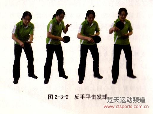 图2-3-2反手平击发球(图片来源于网络,如有侵权,请联系并删除!)