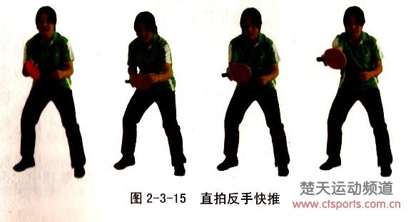 直拍反手快推技术出手快、线路活,是学习其他推挡技术的基础。一般用于对付推挡球,中等力量的突击球和旋转较弱的拉球。在完成这项技术时,除了要正确运用反手快推的方法外,还应注意避免: