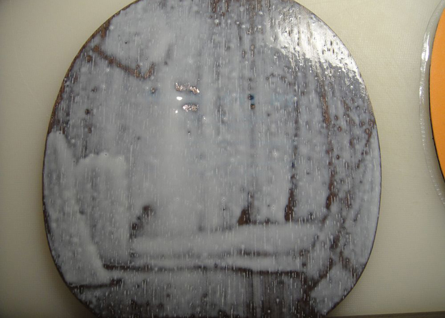 2.底板用海夫无机胶水刷胶,刷后胶水是白色乳状,比较稀释,此时用热电吹风迅速吹干,吹干的另一个好处是,吹破水性胶水在刷的时候产生的气泡;