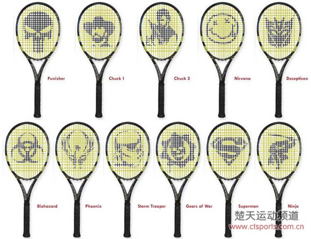 注意自己画的比出厂画的小一点,但我认为更优美一些。alu power的银线红色不明显,下次换黑色试试。除了这些原来球拍的logo,按这个步骤可以用其他一些个性的图案。比如